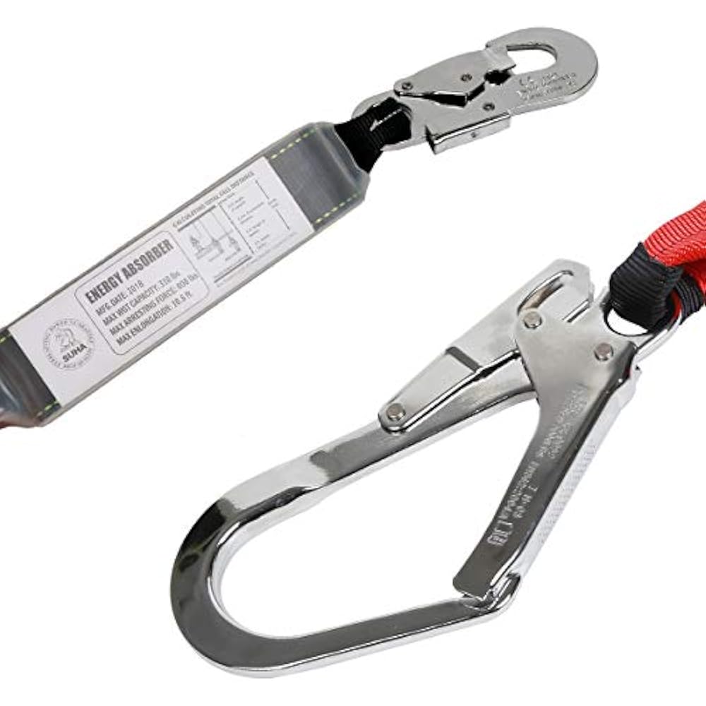 Absorber lanyard body harness double 2 big hook besar extra safety tali pengaman badanenergy absorber with connector.