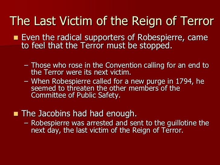 The terror originated with a centralized following these arrests, the jacobins gained control of the committee of public safety on june 10, installing the revolutionary dictatorship.